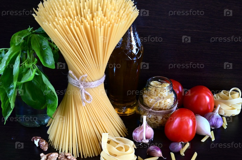 Различные макароны. Концепция приготовления пищи. Вид сверху