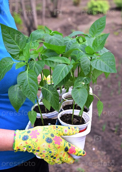 Рассада перца готова к пересадке. Концепция ухода за растениями и выращивания органических продуктов