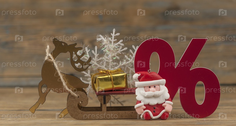 Санта-Клаус и знак процента на фоне дерева С Рождеством Христовым. С Новым Годом