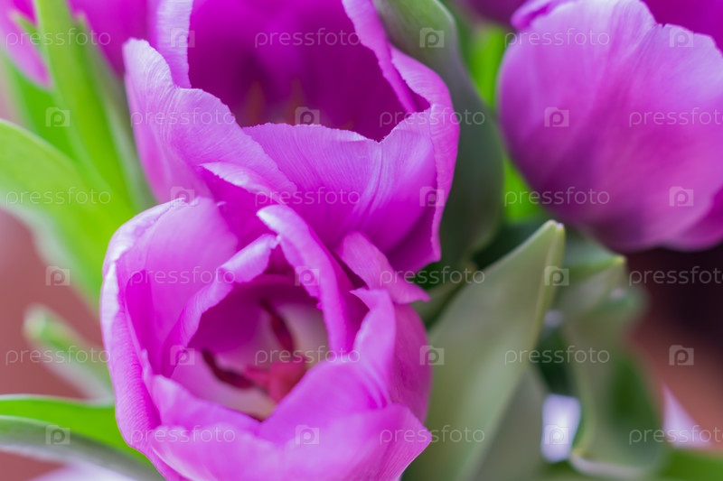 Белые и фиолетовые цветущие тюльпаны. цветочный фон
