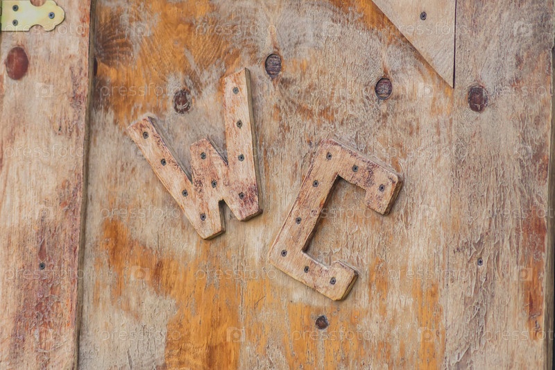 Знак туалета WC на старой деревянной двери