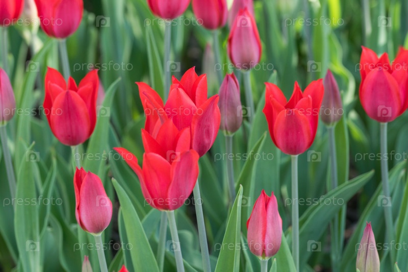 Тюльпан. Красивый букет красных тюльпанов в саду