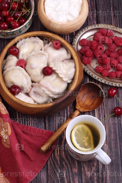 Домашние вареники с вишней и малиной