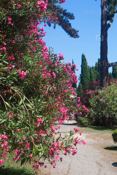 Цветущий олеандр розового цвета