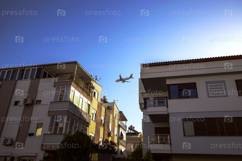 Пассажирский самолет заходит на посадку над жилыми районами Анталии