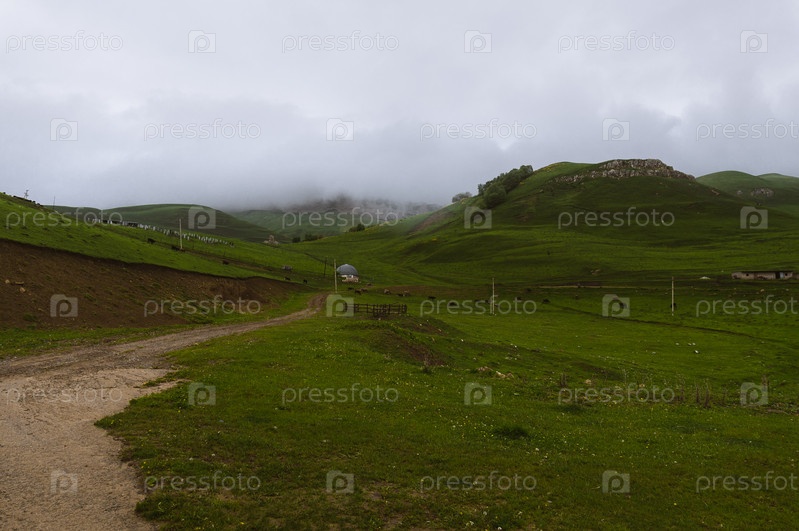 Дорога в тумане в горах Кавказа