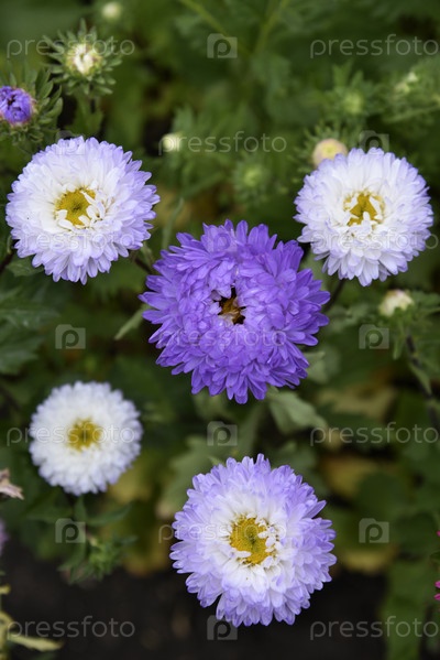 Разноцветные цветы астры крупным планом. Крупные красивые цветы астры