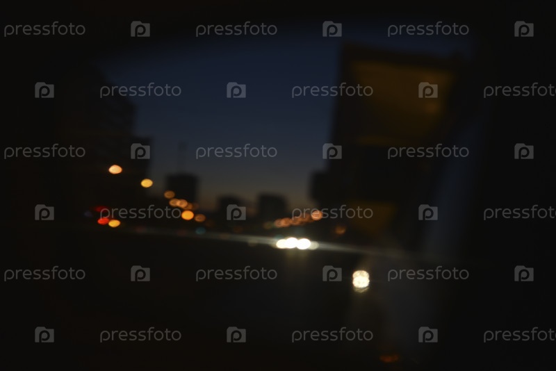 Разноцветные отражения фонарей на вечерней дороге вечером. Блюр и боке от вечернего города