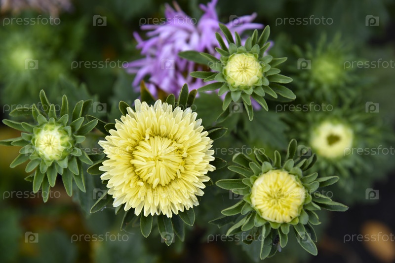Разноцветные цветы астры крупным планом. Крупные красивые цветы астры