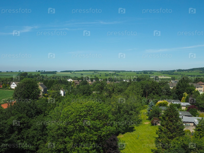 Панорама сельской местности из поезда между Эдинбургом и Глазго
