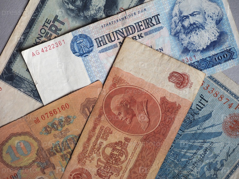 Винтажные изъятые банкноты Советского Союза, Германской Демократической Республики и Германской империи