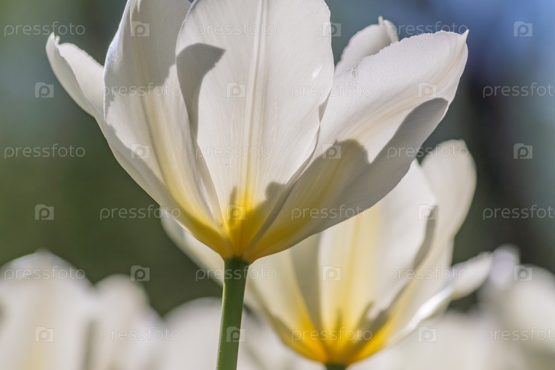 Крупный план белого цветущего тюльпана в весеннем саду