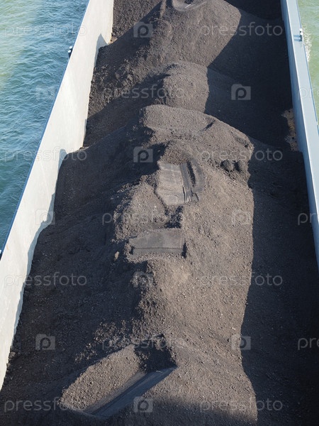 Баржа перевозит землю на реке Рейн в Кельне, Германия