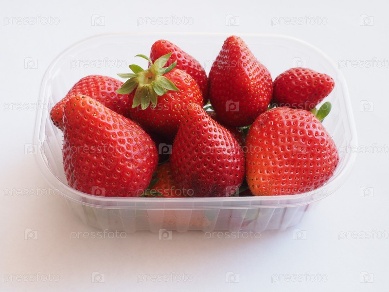 Коробка большой клубники на белом фоне