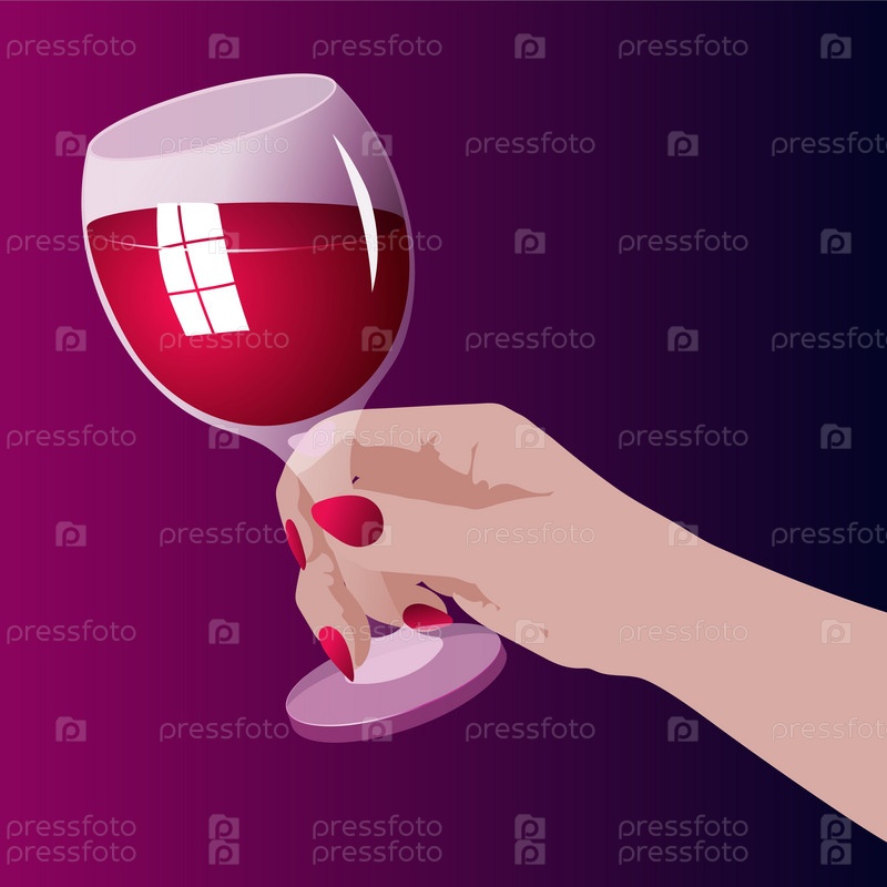 Женская рука держит бокал красного вина