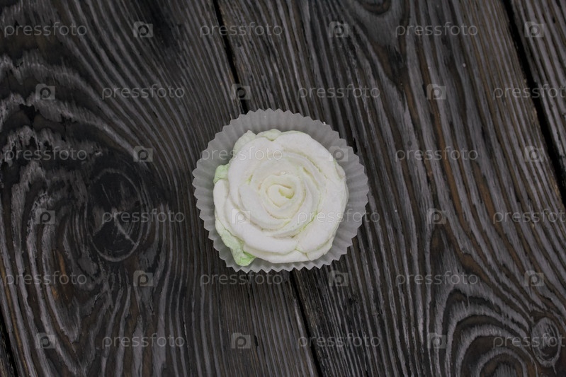 Домашний зефир в бумажной форме. На черных сосновых досках. Взято сверху