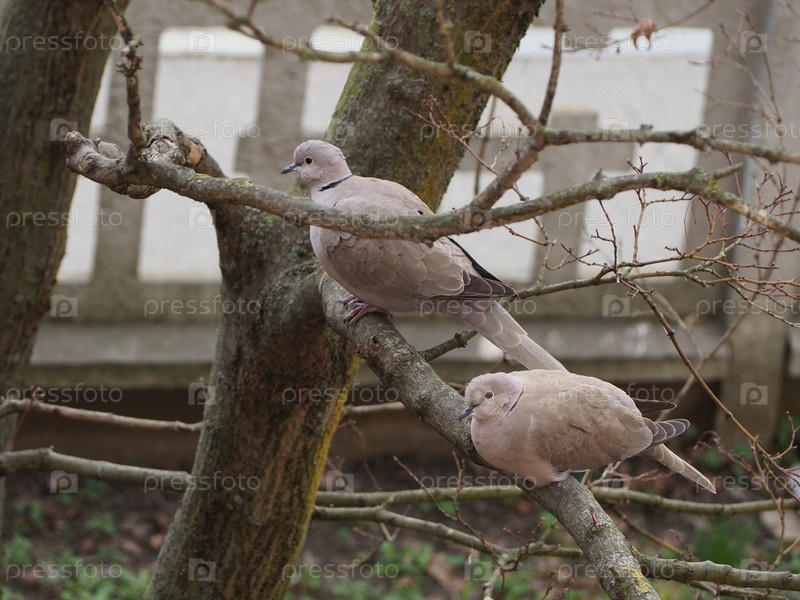 Два евразийских голубя с ошейником (научное название Streptopelia decaocto)