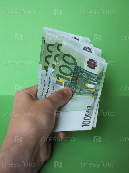 Рука держит и дает деньги банкноты евро (евро), валюта Европейского союза