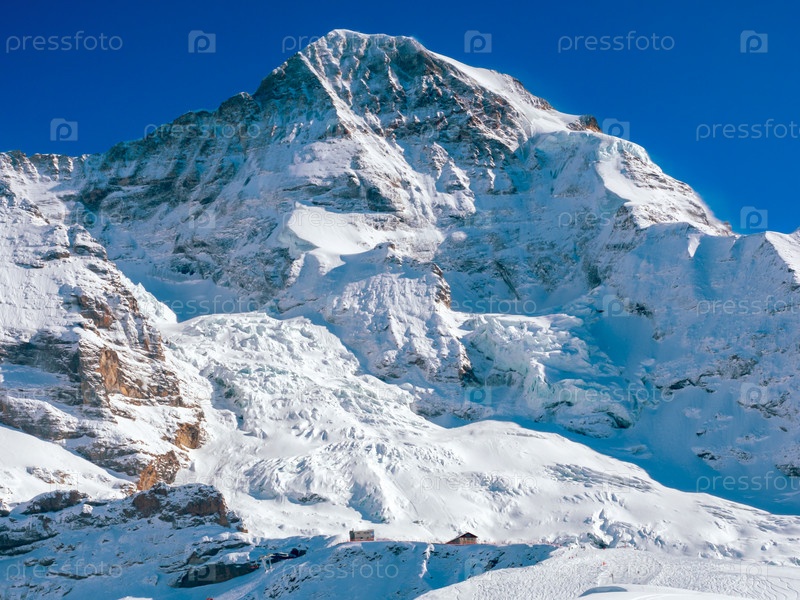 Монх высотой 4107 метров — 13 474 фута — гора в Бернских Альпах, в Швейцарии. Красивый зимний горный пейзаж
