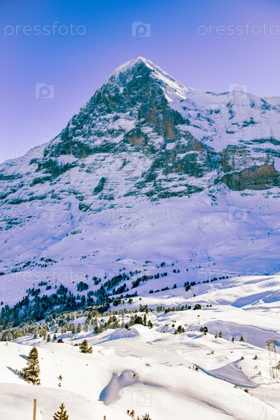 Северная стена пика Эйгер зимой. Гриндельвальд, Швейцария