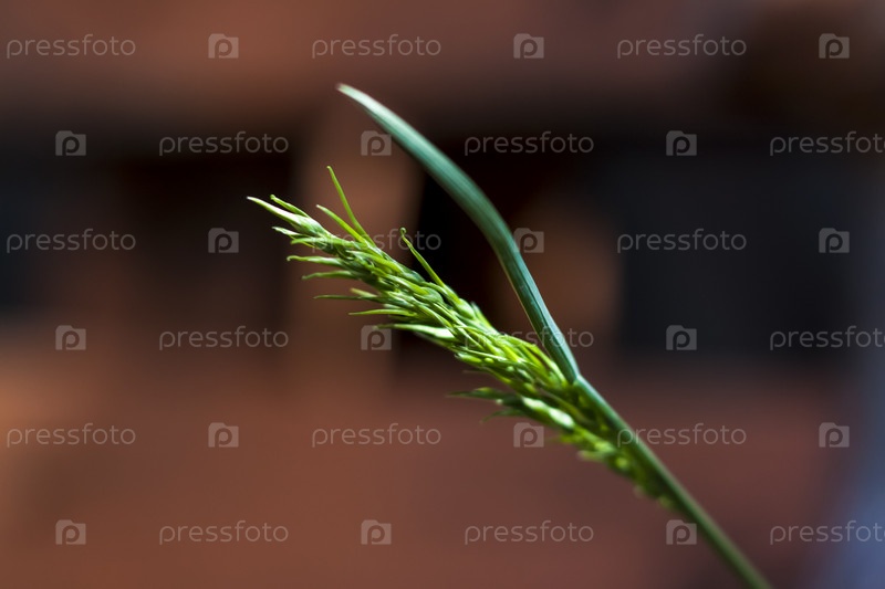 Макрофотография травинки на мягко расфокусированном фоне. Мягкие естественные цвета и мелкие детали травы. Макросъемка растений. Выборочный фокус