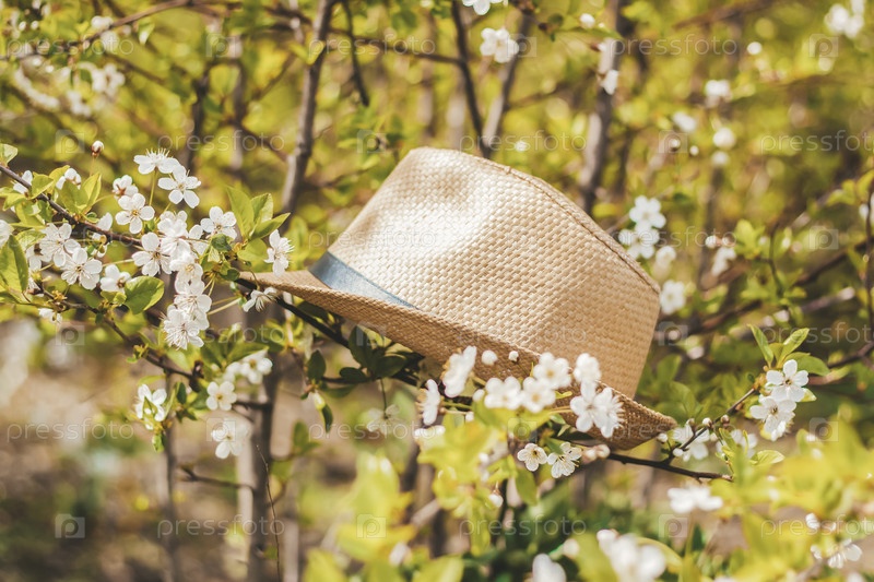 В саду есть садовая шляпа на дереве с белыми цветами вишни. Садоводство и садоводство,