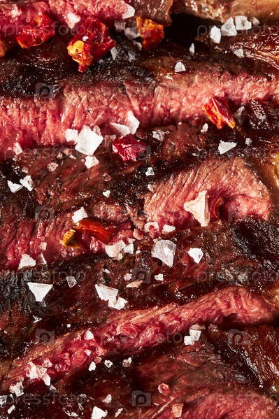 Крупный план Рыбий стейк Средний Редкий на гриле с кристаллами соли