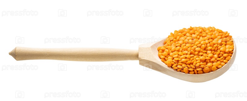 Деревянная ложка с сырой цельной красной чечевицей