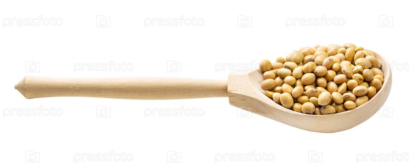 Деревянная ложка с сырыми сушеными соевыми бобами
