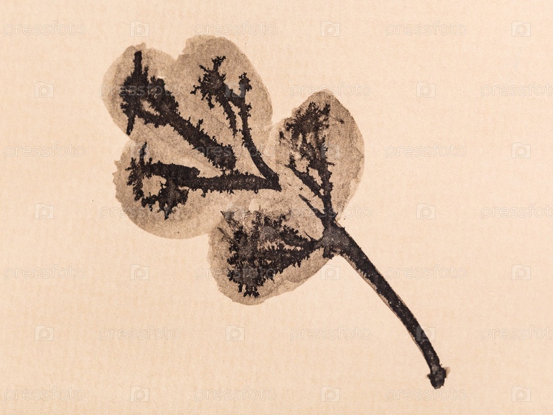 Дубовый лист расписан черной акварелью