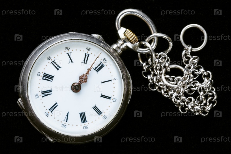 Старинные карманные часы с цепочкой на черном бархате