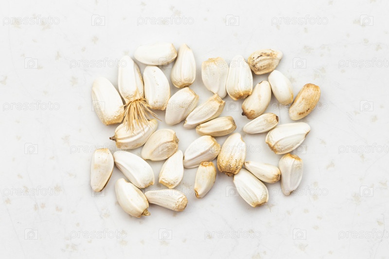 Несколько семян сафлора крупным планом на сером