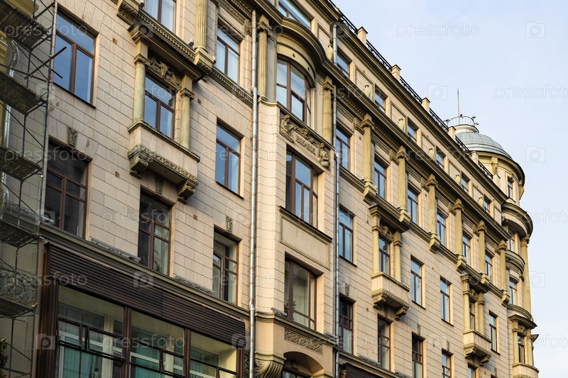 Кафельный фасад старого городского дома на Кузнецком мосту