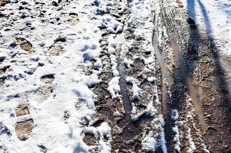 Грязная дорожка, покрытая снегом после последнего снегопада