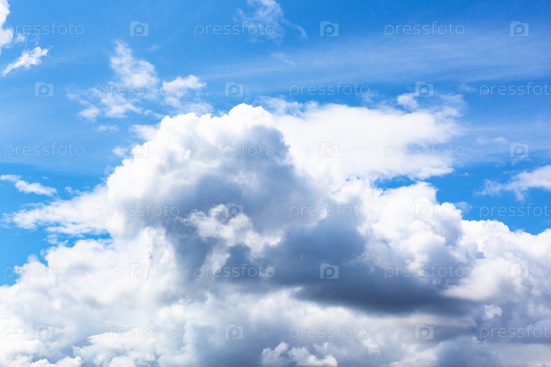Большие белые и серые облака в голубом небе летом