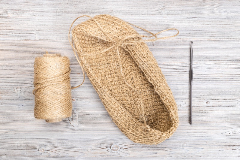 Катушка конопляного шнура и вязаное вручную дно сумки