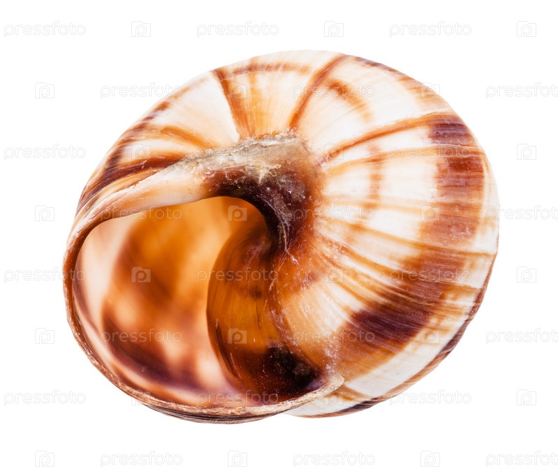 Пустая раковина бордовой улитки, изолированная на белом
