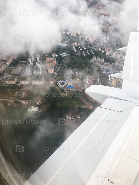 Вид на крыло самолета над Подмосковьем