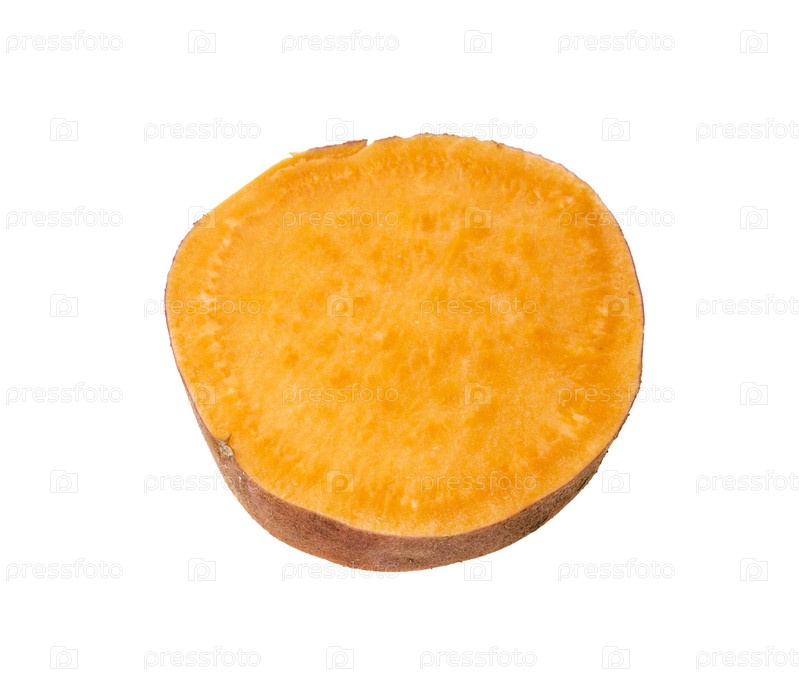 Ломтик клубня сладкого картофеля, выделенный на белом