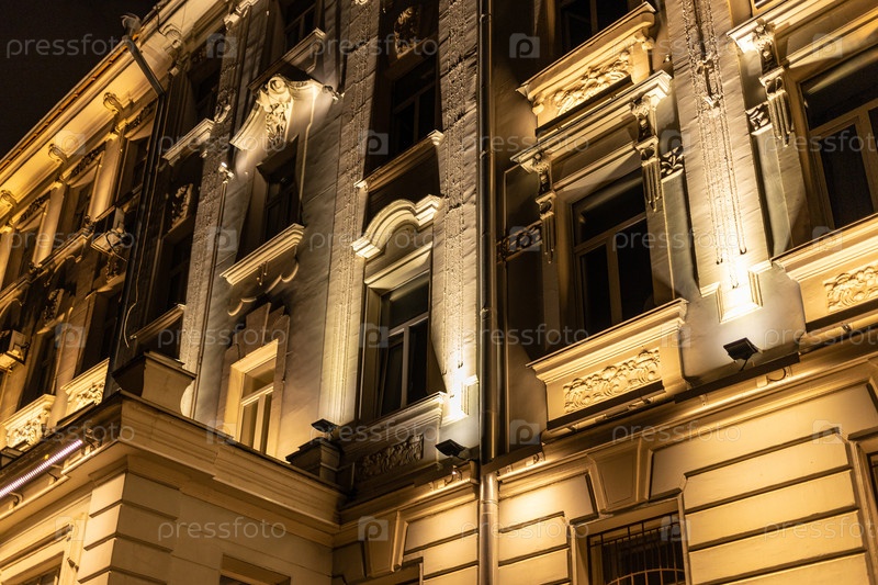 Ночное освещение старого городского дома в Москве