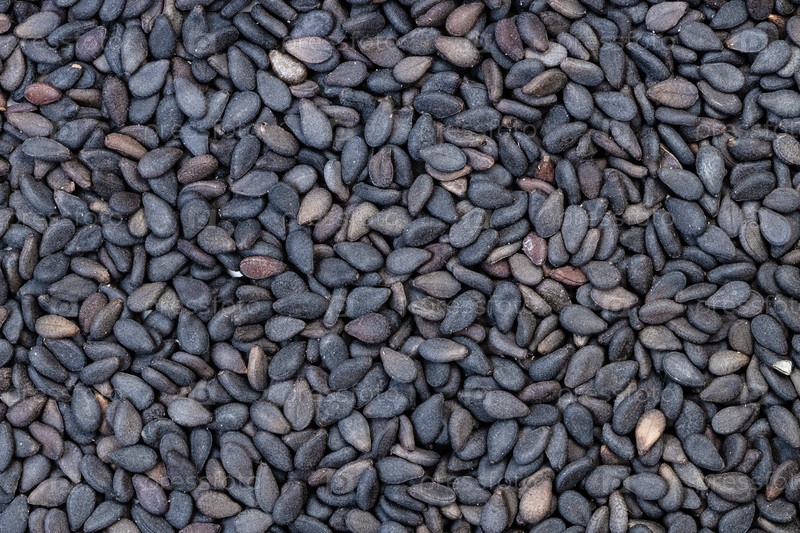 Фон - много семян черного кунжута
