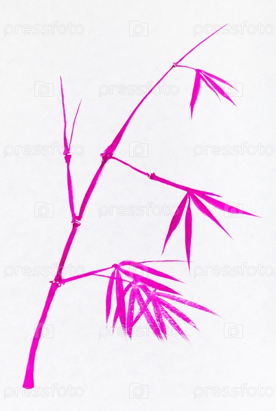 Веточка бамбука расписана розовыми акварельными красками