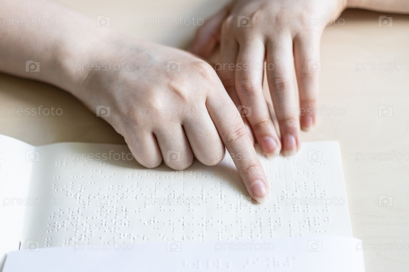 Вид спереди книги для чтения и заметки со шрифтом Брайля