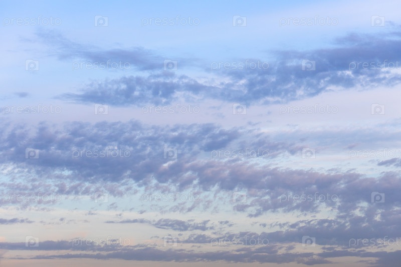Голубое вечернее небо с вихревыми облаками в сумерках