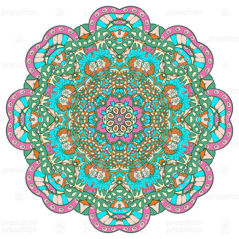 Мандала. Изображение ажурного колеса. Менди дизайн. Этническое каракули. Изогнутая картинка. Вектор