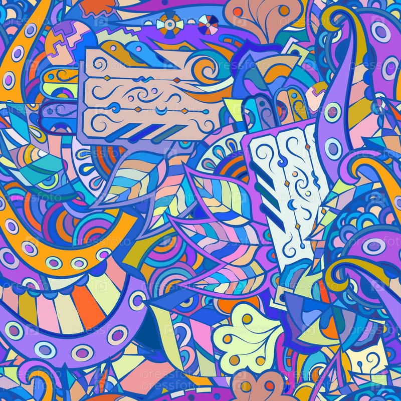 Ажурный бесшовный узор. Менди дизайн. Этническая текстура каракулей. Изогнутый рисунок фона. Вектор