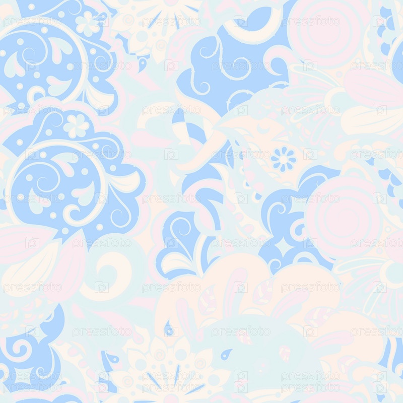 Ажурный бесшовный узор. Менди дизайн. Пастель. 6 цветов. Этническая текстура каракулей. Изогнутый рисунок фона. Вектор