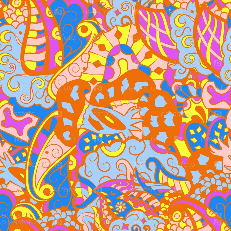 Ажурный бесшовный узор. Менди дизайн. 6 цветов. Этническая текстура каракулей. Изогнутый рисунок фона. Вектор