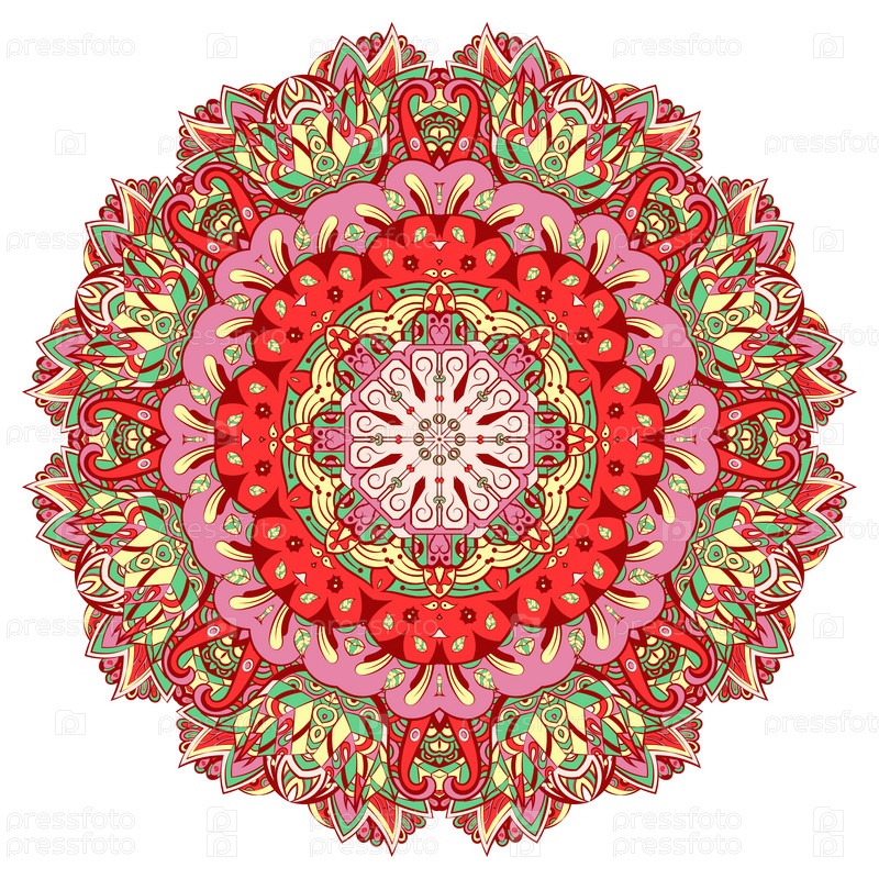 Мандала. Изображение ажурного колеса. Менди дизайн. Этническое каракули. Изогнутая картинка. Вектор