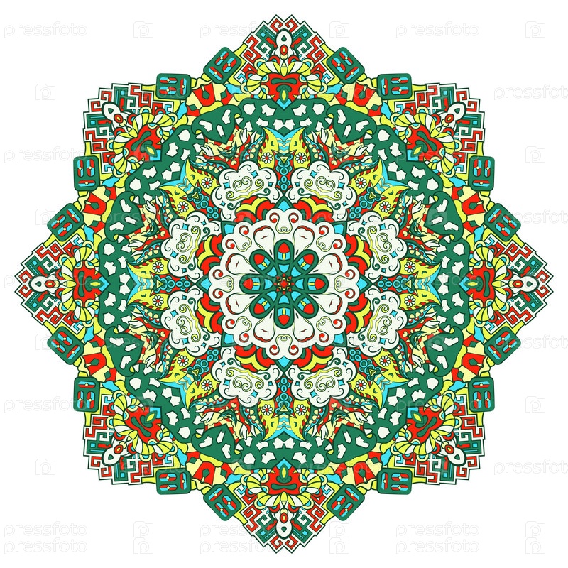 Мандала. Изображение ажурного колеса. Менди дизайн. Этническое каракули. Изогнутая картинка. Вектор